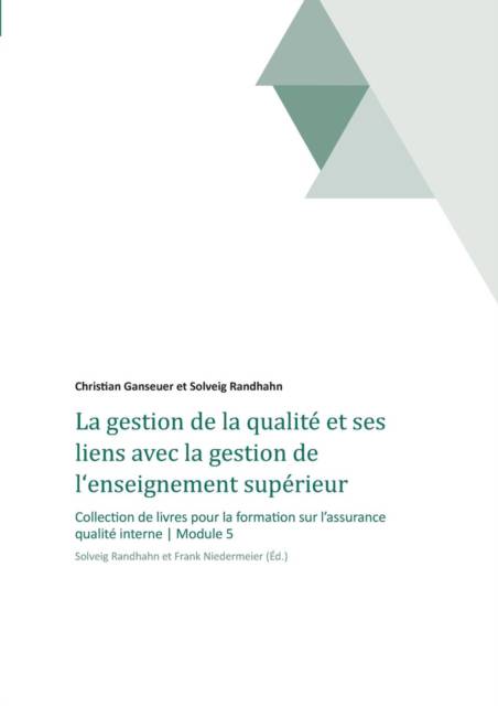Ce livre résume ce qu'il est important pour un système d'assurance qualité fonctionnelle et explique comment clore les cycles de qualité (qui renvoient au cycle de gestion de la qualité en 4 étapes - planifier, développer, contrôler, agir). Ce livret étudie plus en détail le lien entre la gestion de la qualité et les processus décisionnels et analyse les fonctions des parties impliquées ainsi que les limites de leurs actions. Les lecteurs auront ainsi un aperçu des stratégies de communication et de mise en oeuvre pertinentes pour le lancement de processus de changement au sein des établissements d'enseignement supérieur.
