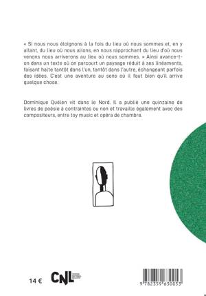 Une fois ôté tout projet d'écrire, on peut commencer de la façon la plus simple, faire avancer un nous, l'inscrire dans un espace élémentaire issu de l'enfance ou de l'administration des eaux et forêts, qu'il traverse on ne sait trop dans quel sens car il y progresse peu. Les éléments sont prêts pour un récit, mais disjoints, parfois défectueux. C'est un assemblage non-linéaire. Si chaque paragraphe est une nouvelle tentative, le but n'en est pas clair, quoique sans cesse il soit question de définir ce dont il s'agit. Du reste, le nous peut céder la place à un je, un tu, qui ne sont pas davantage individués. Ils ne sont aussi bien qu'un effet de la grammaire. Pas de solution de continuité entre la langue et le réel (ou la fiction), non parce qu'ils s'équivaudraient mais parce que croyant être dans l'un on est dans l'autre : ça communique, comme si - hypothèse - l'objet de ce texte était le texte lui-même et l'objet qu'il constitue, qui dérive à l'intérieur d'un espace clos.
