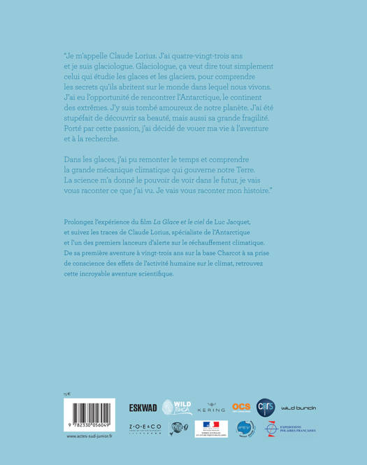 Un album documentaire jeunesse qui explore les thèmes du climat, de la glaciologie, des écosystèmes et de la biodiversité d'une manière unique. Le lecteur suit la vie aventureuse de Claude Lorius à partir de sa première aventure à 23 ans sur la base Charcot. Le livre, tout comme le film, met en exergue 5 expéditions du glaciologue. On découvre la vie dans des bases isolées, le quotidien difficile des chercheurs, subissant des températures allant parfois au-delà des -50°C, les voyages périlleux à travers les crevasses des glaciers mais aussi des paysages à couper le souffle... Des encadrés scientifiques ponctuent le récit en apportant des informations sur le métier de glaciologue, la climatologie et les différentes questions soulevées par les recherches de Claude Lorius.