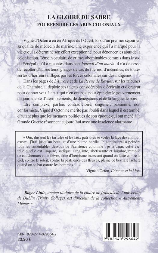 Vigné d'Octon a eu en Afrique de l'Ouest, lors d'un premier séjour en sa qualité de médecin de marine, une expérience qui l'a marqué pour la vie et qui a déterminé son effort exceptionnel pour dénoncer les abus de la colonisation. Témoin oculaire de crimes abominables commis dans le sud du Sénégal qu'il a racontés dans son Journal d'un marin, il n'a de cesse de récolter d'autres témoignages de cas de tueries, d'incendies, de toutes sortes d'horreurs infligés par les forces coloniales sur des indigènes. Dans les pages de L'Aurore et de La Revue de Revues, sur les tribunes de la Chambre, il déploie ses talents considérables d'écrivain et d'orateur pour donner voix à ceux qui n'en ont pas, pour épingler le gouvernement du jour adepte d'atermoiements, de dénégations et de la langue de bois.