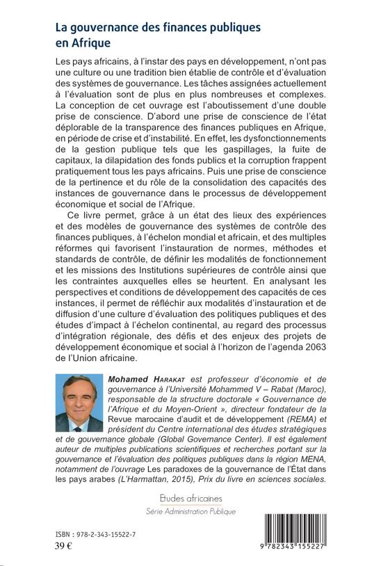 Ce livre permet, grâce à un état des lieux des expériences et des modèles de gouvernance des systèmes de contrôle des finances publiques, à l'échelon mondial et africain, et des multiples réformes qui favorisent l'instauration de normes, méthodes et standards de contrôle, de définir les modalités de fonctionnement et les missions des Institutions supérieures de contrôle ainsi que les contraintes auxquelles elles se heurtent.
