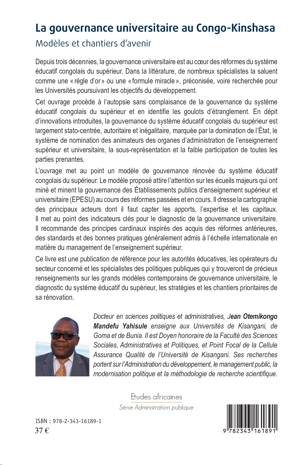 Depuis trois décennies, la gouvernance universitaire est au coeur des réformes du système éducatif congolais du supérieur. Cet ouvrage procède à l'autopsie sans complaisance de la gouvernance du système éducatif congolais du supérieur et en identifie les goulots d'étranglement. Il met au point un modèle de gouvernance rénovée du système éducatif congolais du supérieur. Le modèle proposé attire l'attention sur les écueils majeurs qui ont miné et minent encore la gouvernance des Établissements publics d'enseignement supérieur et universitaire au cours des réformes passées et en cours.