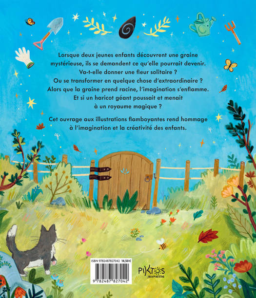 Une petite fille et un petit garçon découvrent une graine. Avant même de la planter, ils se demandent ce qu’elle va pouvoir donner… Et c’est le début d’une floraison de rêves, d’images, de situations aventureuses… L’imaginaire et l’imagination sont en marche chez ces deux personnages. Et au moment de réellement planter la graine, l’évasion peut continuer. Un hommage à la créativité et à l’imaginaire. Le récit se déroule sous forme de dialogues, ce qui en accentue le dynamisme et l’illustration colorée et fourmillante de détails, rend hommage à la diversité de la nature et son côté foisonnant.