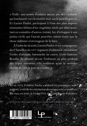« Voilà : une armée d’enfants menée par des vieillards qui louchaient vers la sénilité était sur le pied de guerre. Et Lucien Paulet, participant à l’une des plus impressionnantes bêtises d’un vingtième siècle qui allait pourtant en connaître d’autres, tentait, lui, d’échapper à une justice civile qui l’aurait peut-être mieux traité que la chose militaire n’envisageait de le faire.
