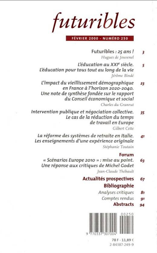 Jérôme BINDÉ, Charles (du) GRANRUT, Jacques BARTHÉLÉMY, Gilbert CETTE, Stéphanie TOUTAIN