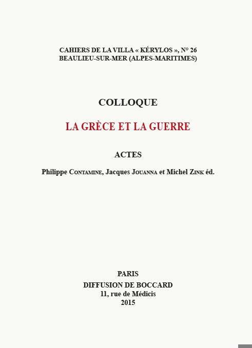 Depuis Homere, la guerre, a de frequents intervalles, est venue voiler de son ombre le soleil radieux cense eclairer l'espace hellenique, qu'il soit terrestre ou maritime. En cette annee de commemoration du declenchement de la Premiere guerre mondiale, a laquelle la Grece prit part, sous des formes diverses (il n'est que de songer a l'action de Venizelos et a l'ouverture du front d'Orient ), ce theme s'est comme impose a l'Academie des Inscriptions et Belles-Lettres pour son XXVe colloque de la Villa Kerylos.