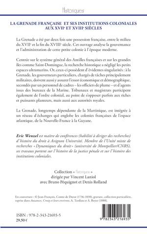 Cet ouvrage analyse la gouvernance et l'administration de cette petite colonie à l'époque moderne. Centrée sur le système général des Antilles françaises et sur les grandes îles comme Saint-Domingue, la recherche historique a négligé les petits espaces ultramarins. Or, ceux-ci possèdent d'évidentes singularités : à la Grenade, les gouverneurs particuliers, chargés de tâches principalement militaires, doivent aussi y assurer l'essor économique et démographique. Tribunaux et magistrats participent également de l'ordre colonial, au point de s'opposer parfois aux riches et puissants planteurs, mais aussi aux autorités royales. La Grenade, longtemps dépendante de la Martinique, est intégrée à un réseau d'échanges qui englobe les colonies françaises de l'espace atlantique, de la Nouvelle-France à la Guyane.