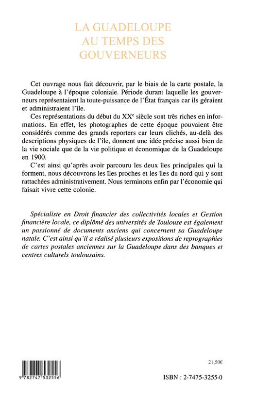 Cet ouvrage nous fait découvrir, par le biais de la carte postale, la Guadeloupe à l'époque coloniale. Période durant laquelle les gouverneurs représentaient la toute-puissance de l'Etat Français car il géraient et administraient l'île. Ces représentations du début du XXe siècle sont très riches en informations. Les photographes de cette époque pouvaient être considérés comme des grands reporters car leurs clichés, au-delà des descriptions physiques de l'île, donnent une idée précise aussi bien de la vie sociale, de la vie politique, et économique de la Guadeloupe en 1900.