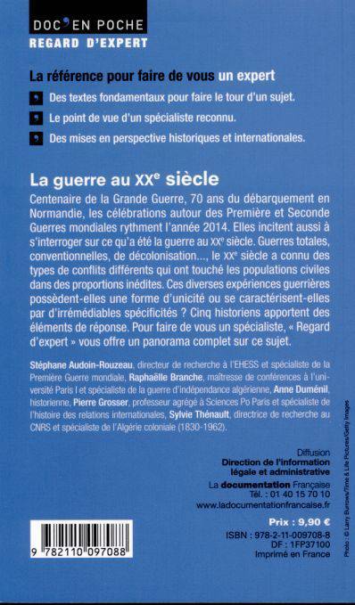 Centenaire de la Grande Guerre, 70 ans du débarquement en Normandie, les célébrations autour des Première et Seconde Guerres mondiales rythment l'année 2014. Elles incitent aussi à s'interroger sur ce qu'a été la guerre au XXe siècle. Guerres totales, conventionnelles, de décolonisation..., le XXe siècle a connu des types de conflits différents qui ont touché les populations civiles dans des proportions inédites. Ces diverses expériences guerrières possèdent-elles une forme d'unicité ou se caractérisent-elles par d'irrémédiables spécificités ? Cinq historiens apportent des éléments de réponse. Pour faire de vous un spécialiste, « Regard d'expert » vous offre un panorama complet sur ce sujet.