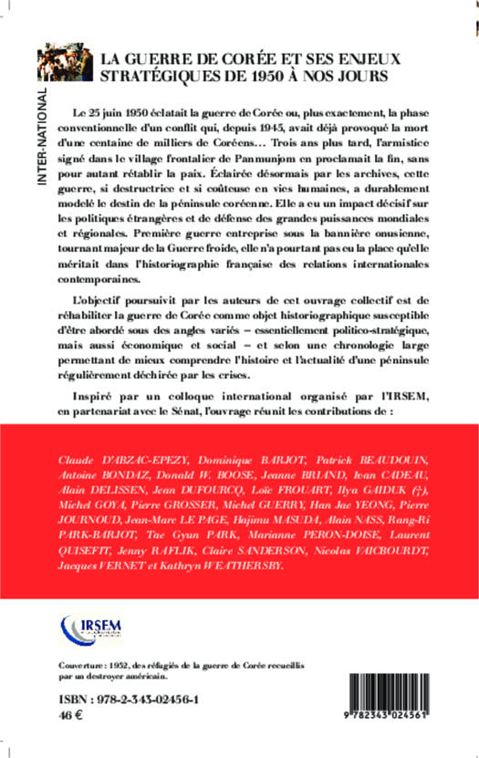 Le 25 juin 1950 éclatait la guerre de Corée. Celle-ci a durablement modelé le destin de la péninsule coréenne et a eu un impact décisif sur les politiques étrangères et de défense des grandes puissances mondiales et régionales. Elle n'a pourtant pas eu la place qu'elle méritait dans l'historiographie française des relations internationales contemporaines. Cet ouvrage permet d'éclairer l'actualité d'une péninsule régulièrement déchirée par les crises.
