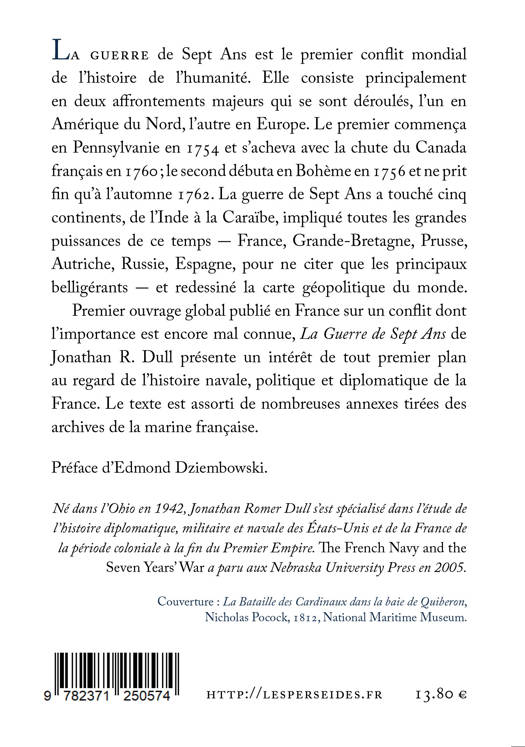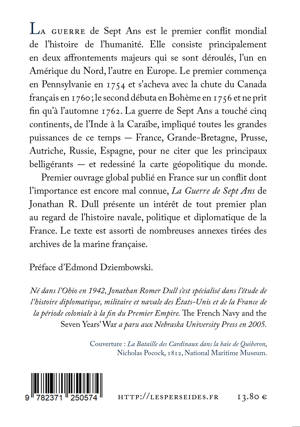 Premier ouvrage global publié en France sur un conflit dont l’importance est encore mal connue, La Guerre de Sept Ans de Jonathan R. Dull présente un intérêt de tout premier plan au regard de l’histoire navale, politique et diplomatique de la France. Le texte est assorti de nombreuses annexes tirées des archives de la marine française.