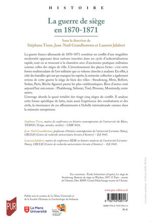 La guerre franco-allemande de 1870-1871 constitue un conflit d’une singulière modernité opposant deux nations inscrites dans un cycle d’industrialisation rapide, tout en se trouvant à la charnière avec d’anciennes pratiques militaires comme celles des sièges de ville. L’investissement des places fortes : c’est cette forme multiséculaire de l’art militaire que ce volume cherche à analyser. En effet, à côté des batailles qui ont pu marquer les esprits, la mémoire collective a également retenu de cette guerre le siège de bien des villes : Strasbourg, Metz, Belfort, Sedan, Paris, Bitche figurent parmi les plus emblématiques. Bien d’autres sont aujourd’hui méconnus : Phalsbourg, Sélestat, Toul, Péronne, Montmédy, entre autres. L’ouvrage aborde la quasi-totalité des vingt-cinq sièges du conflit. Il analyse cette forme spécifique de lutte, mais aussi l’expérience des combattants et des civils, la résonnance de ces affrontements à l’échelle internationale comme dans la mémoire européenne.