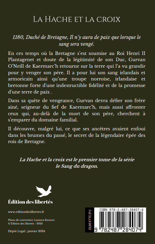 1180, Duché de Bretagne, Il n’y aura de paix que lorsque le sang sera vengé. En ces temps où la Bretagne s’est soumise au Roi Henri II Plantagenet et doute de la légitimité de son Duc, Gurvan O’Neill de Kaermarc’h retourne sur la terre qui l’a vu grandir pour y venger son père. Il a pour lui son sang irlandais et armoricain ainsi qu’une troupe norroise, irlandaise et bretonne forte d'une indestructible fidélité et de la promesse d'une terre de paix . Dans sa quête de vengeance, Gurvan devra défier son frère ainé, seigneur du fief de Kaermarc’h, mais aussi affronter ceux qui, au-delà de la mort de son père, cherchent à s’emparer du domaine familial. Il découvre, malgré lui, ce que ses ancêtres avaient enfoui dans les brumes du passé, le secret de la légendaire épée des rois de Bretagne.