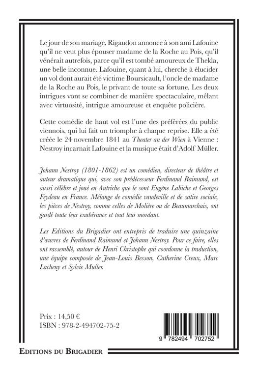 Cette comédie de haut vol est l’une des préférées du public viennois, qui lui fait un triomphe à chaque reprise. Elle a été créée le 24 novembre 1841 au Theater an der Wien à Vienne : Nestroy incarnait Lafouine et la musique était d’Adolf Müller.