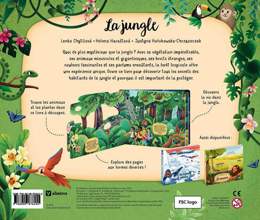 Quoi de plus mystérieux que la jungle ? Avec sa végétation impénétrable, ses animaux minuscules et gigantesques, ses bruits étranges, ses couleurs fascinantes et ses parfums envoûtants, la forêt tropicale offre une expérience unique. Ouvre ce livre pour découvrir tous les secrets des habitants de la jungle et pourquoi il est important de la protéger. Une aventure incroyable dans la jungle pour les jeunes explorateurs et exploratrices, permettant de découvrir un nouvel habitat et la faune associée !