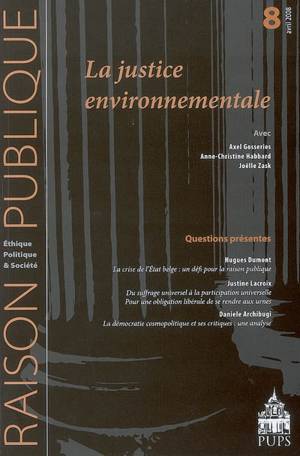 Des végétariens aux pédagogues de l'empreinte écologique, des avocats de la soutenabilité aux défenseurs des réfugiés africains, tous ont en tête une vision souvent différente de ce qui fait la valeur d'une espèce de papillon, de l'importance de pérenniser notre propre espèce, des droits de chacun à un égal accès aux ressources ou à un environnement de qualité, et de bien d'autres problèmes encore. Que peut donc bien signifier alors « agir de façon environnementalement juste » dans le monde d'aujourd'hui ?
