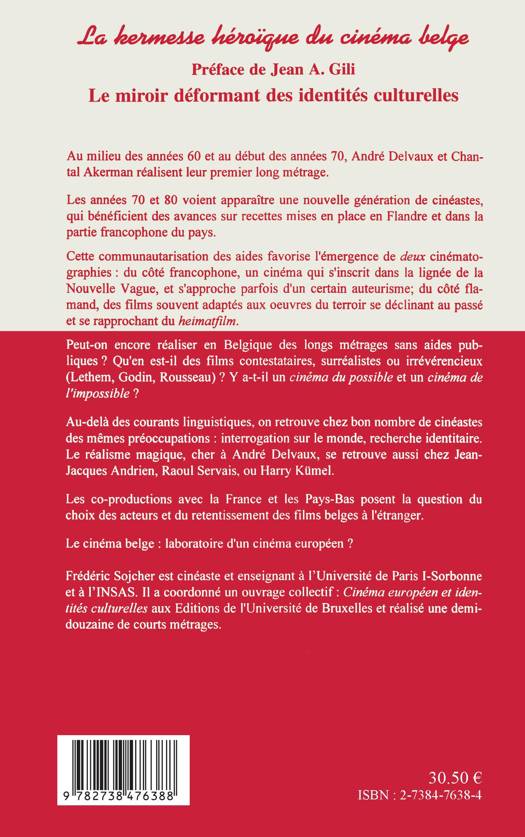 Histoire du cinéma, mais aussi miroir des identités culturelles à travers des films de long métrage ( fiction et documentaire), La kermesse héroïque du cinéma belge met en lumière les spécificités culturelles, esthétiques et politiques, les points communs et les différences, souvent étonnants, entre le Nord et le Sud du pays. Le cinéma sert ici de révélateur.