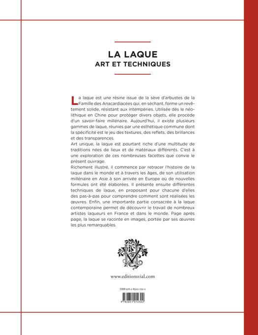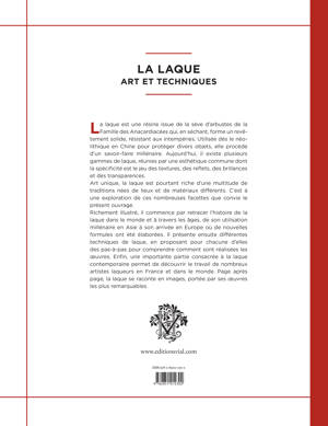 Richement illustré, il commence par retracer l’histoire de la laque dans le monde et à travers les âges, de son utilisation millénaire en Asie à son arrivée en Europe où de nouvelles formules ont été élaborées. Il présente ensuite différentes techniques de laque, en proposant pour chacune d’elles des pas-à-pas pour comprendre comment sont réalisées les œuvres. Enfin, une importante partie consacrée à la laque contemporaine permet de découvrir le travail de nombreux artistes laqueurs en France et dans le monde. Page après page, la laque se raconte en images, portée par ses œuvres les plus remarquables.