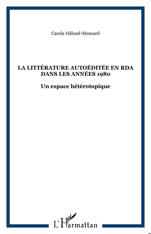Les années 1980 voient naître en RDA de nouvelles expressions littéraires liées à l'émergence d'une culture parallèle. Cette littérature est communément appelée "littérature du Prenzlauer Berg", nom d'un quartier de Berlin-Est, devenu le carrefour des auteurs et artistes marginaux. Ces publications sont autoéditées. Carola Hähnel-Mesnard en donne ici une vision globale, et situe les auteurs à l'aide du concept foucaldien d'hétérotopie.