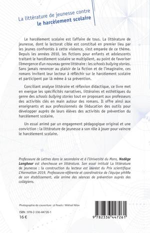 Le harcèlement scolaire est l’affaire de tous. La littérature de jeunesse, dont le lectorat cible est constitué en premier lieu par les jeunes confrontés à cette violence, s’est emparée de ce thème. Depuis les années 2010, les fictions pour enfants et adolescents traitant le harcèlement scolaire se multiplient, au point de favoriser l’émergence d’un nouveau genre littéraire : les schools bullying stories. Sans jamais renoncer au plaisir de la fiction et de l’imaginaire, ces romans invitent leur lecteur à réfléchir sur le harcèlement scolaire et participent par là même à sa prévention. Conciliant analyse littéraire et réflexion didactique, ce livre met en exergue les spécificités narratives, littéraires et esthétiques du genre des schools bullying stories tout en proposant aux professeurs des activités clés en main autour des romans. Il offre ainsi aux enseignants et aux professionnels de l’éducation des outils pour développer auprès de leurs élèves des activités de prévention du harcèlement scolaire. Un essai animé par un engagement pédagogique original et une conviction : la littérature de jeunesse a son rôle à jouer pour vaincre le harcèlement scolaire.