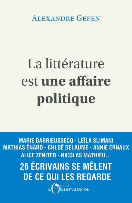 Dans une société avide de spectacle, on feint trop souvent de croire que la littérature sert de pur divertissement. Cette enquête auprès de vingt-six écrivains contemporains montre le contraire : la littérature est avant tout une affaire politique. C’est le constat de ce livre, composé d’entretiens inédits : même s’ils réfutent la vieille notion de « littérature engagée », les écrivains français sont loin de prôner une indifférence esthète à l’égard des problèmes politiques de leur pays. Très souvent, ils choisissent de faire de leurs récits un outil d’analyse des inégalités. Pour mieux interroger les discours sociaux, ils tournent autour de l’autobiographie ou du reportage. Ils tentent parfois de prolonger les crises sociétales, ou même de les prévoir. Ils vont de surcroît au-devant des demandes sociales, en participant à des résidences littéraires (en région, à l’hôpital, dans les Ehpad, auprès des jeunes, des migrants). Bref : ils descendent volontiers de cette tour d’ivoire dans laquelle on voudrait les emprisonner, et qu’ils ne supportent plus. D’Annie Ernaux à Alice Zeniter, en passant par Aurélien Bellanger, Leïla Slimani et Mathias Énard : voici dévoilé le formidable panorama d’une littérature pugnace et moderne, avide de changer notre société.