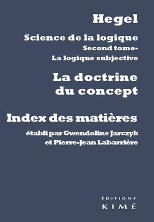 Partie intégrante des Appendices qui figurent en fin du livre de la Doctrine du concept de Hegel (second tome de la Science de la Logique, La logique subjective), l'Index que voici, étant donné son ampleur, a du en être détaché pour paraître en volume séparé.