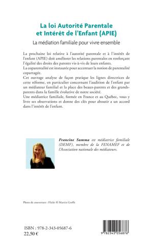 La prochaine loi relative à l'autorité parentale et à l'intérêt de l'enfant (APIE) doit améliorer les relations parentales en renforçant l'égalité des droits des parents vis-à-vis de leurs enfants. La coparentalité est instaurée pour accentuer la notion de parentalité copartagée. Cet ouvrage analyse de façon pratique les lignes directrices de cette réforme, en particulier concernant l'audition de l'enfant par un médiateur familial et la place des beaux-parents et des grands-parents dans la famille évolutive de notre société.