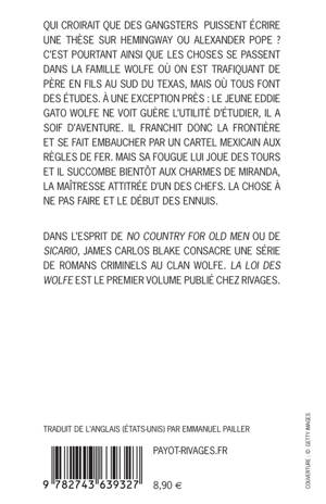 Qui croirait que des gangsters puissent écrire une thèse sur Hemingway ou Alexander Pope ? C'est pourtant ainsi que les choses se passent dans la famille Wolfe où on est trafiquant de père en fils au sud du Texas, mais où tous font des études. A une exception près : le jeune Eddie Gato Wolfe ne voit guère l'utilité d'étudier, il a soif d'aventure. Il franchit donc la frontière et se fait embaucher par un cartel mexicain aux règles de fer. Mais sa fougue lui joue des tours et il succombe bientôt aux charmes de Miranda, la maîtresse attitrée d'un des chefs. La chose à ne pas faire et le début des ennuis.