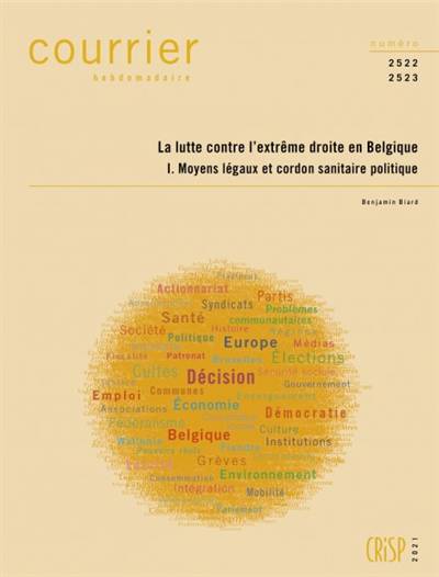 Quels sont les acteurs, les instruments et les stratégies de la lutte contre l’extrême droite en Belgique, et quels semblent être leurs effets ? C’est à cette question, d’une importance certaine mais fort peu explorée par la littérature scientifique, que répond ce Courrier hebdomadaire. La lutte contre l’extrême droite prend des visages multiples. Ses acteurs sont issus de diverses sphères : politique, judiciaire, associative, médiatique, etc. Ses instruments sont hétérogènes : des lois aux campagnes de sensibilisation, en passant par les règlements d’assemblée parlementaire, les accords entre partis politiques, les manifestations ou la confrontation directe. Ses stratégies sont plurielles, qu’elles visent à éviter ou à endiguer la progression des idées d’extrême droite au sein de la société en général, ou à contrer une personne ou association particulière incarnant cette tendance politique. Partant, ses résultats sont difficiles à cerner, si ce n’est d’une manière globale. Ce premier tome porte d’abord sur les moyens légaux développés et mobilisés face à l’extrême droite : interdiction et dissolution d’associations ; législation contre les discriminations, le racisme et le négationnisme ; privation ou suspension du financement public des partis d’extrême droite ; etc. Il examine ensuite le dispositif connu sous le nom de « cordon sanitaire politique ». Plus globalement, il tente de percevoir l’impact de ces stratégies sur les formations d’extrême droite, notamment en termes de succès ou de recul électoral.
