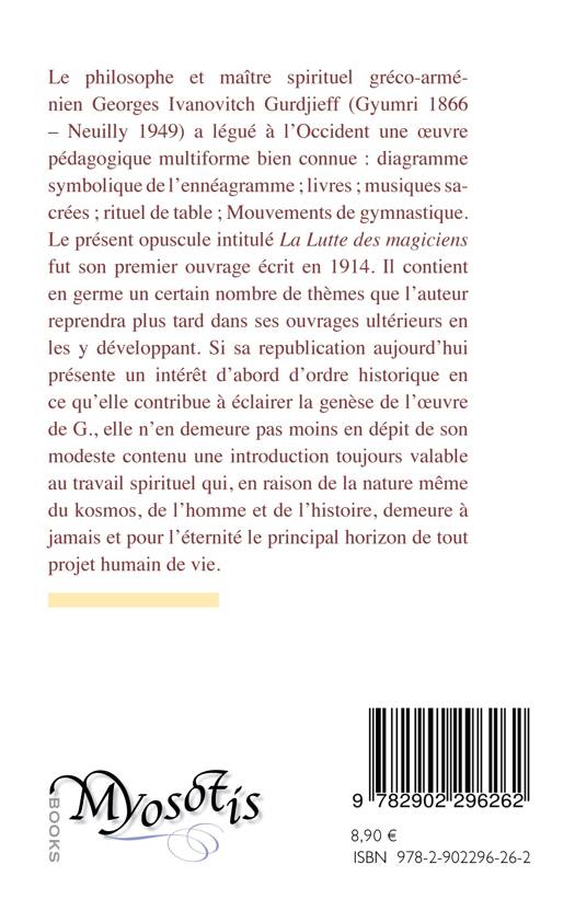 Le scénario de ce ballet, qui date d'environ 1914, est le premier écrit connu de G.I.GURDJIEFF (1866-1949). Cet écrit de jeunesse fut une première fois évoqué en 1915 dans « Lueurs de vérité » ... mais il faudra attendre 1957 pour que ce scénario soit imprimé (et encore à un très petit nombre d'exemplaires) en anglais en Afrique du sud à Cape Town. Cet ouvrage décrit bien la lutte entre un magicien blanc et un magicien noir. La traduction française est ici l'oeuvre de Patrick Négrier, philosophe français. Elle est complétée par une introduction et une postface qui expliquent en détail le parcours de Gurdjieff. Cette seconde édition, augmentée, contient également un Post-scriptum du traducteur.