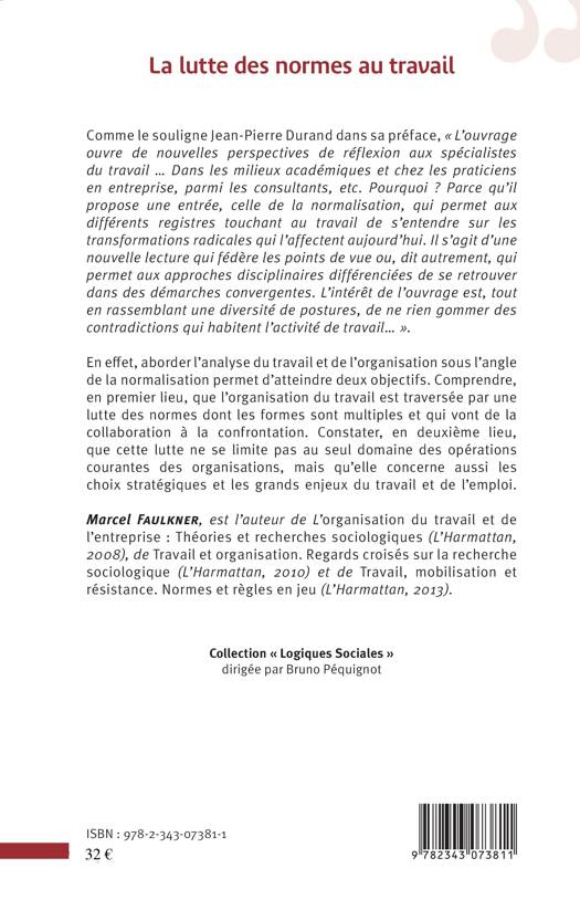 Aborder l'analyse du travail et de l'organisation sous l'angle de la normalisation permet d'atteindre deux objectifs. Comprendre que l'organisation est traversée par une lutte des normes dont les formes sont multiples et qui vont de la collaboration à la confrontation. Constater que cette lutte ne se limite pas au seul domaine des opérations courantes des organisations, mais qu'elle concerne aussi les choix stratégiques et les grands enjeux du travail et de l'emploi.
