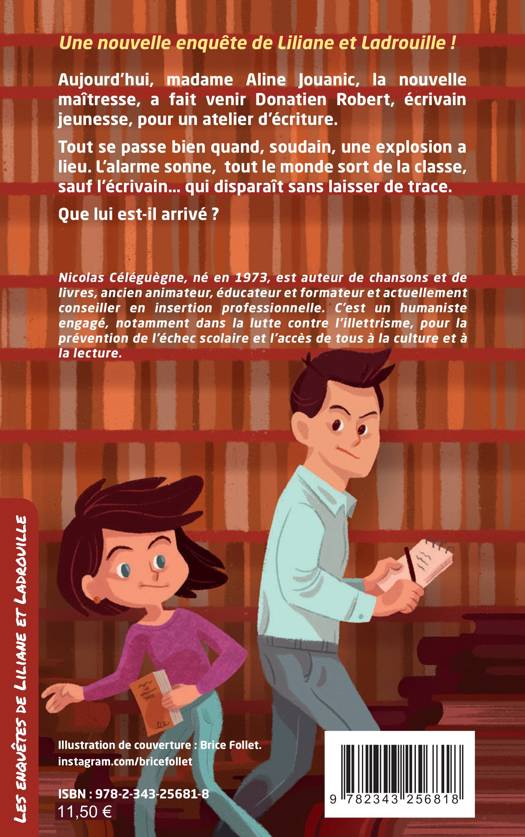 Aujourd’hui, madame Aline Jouanic, la nouvelle maîtresse, a fait venir Donatien Robert, écrivain jeunesse, pour un atelier d’écriture.Tout se passe bien quand, soudain, une explosion a lieu. L’alarme sonne, tout le monde sort de la classe, sauf l’écrivain… qui disparaît sans laisser de trace.Que lui est-il arrivé ?