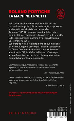 Automne 1955. On retrouve par miracle les notes du scientifique. Elles inspirent au père Ernetti une idée folle : construire une machine à voir dans le temps. Un chronoviseur. Sur ordre de Pie XII, le prêtre plonge deux mille ans en arrière. L’objectif est simple : prouver l’existence du Christ. Commence alors une course folle entre le Vatican, la CIA, le KGB et le Mossad. Car ce que le père Ernetti va découvrir, en pleine guerre froide, pourrait changer l’ordre du monde.