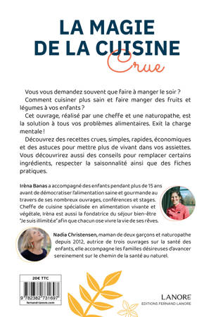 « Vous vous demandez souvent que faire à manger ce soir ? » Comment cuisiner plus sain et faire manger des fruits et légumes à nos enfants. Cet ouvrage est la solution à tous vos problèmes alimentaires. Exit la charge mentale ! Découvrez des recettes crues simples, rapides et économiques élaborées par une cheffe et une naturopathe. Des astuces pour mettre plus de vivant dans vos assiettes et des conseils pour remplacer certains ingrédients et respecter la saisonnalité.