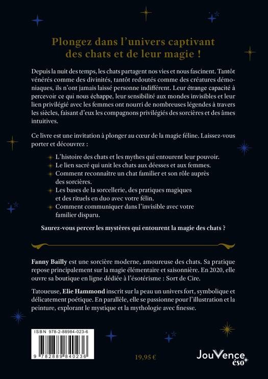 Depuis des millénaires, les chats fascinent. Vénérés comme des divinités dans certaines civilisations, considérés comme des créatures maléfiques dans d’autres, ces êtres mystérieux ont su s’imposer dans nos foyers et nos cœurs. Plongez dans l’univers captivant des chats et de leur magie ! Découvrez l’histoire des félins à travers les âges et les cultures, les légendes qui les entourent, ainsi que leurs liens sacrés avec les divinités et leur rôle auprès des sorcières. Apprenez à reconnaître si votre chat est un familier (cette créature magique qui assiste les sorciers) et explorez des sortilèges puissants, à réaliser seul ou en duo.