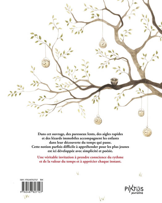 Dans cet ouvrage, des paresseux lents, des aigles rapides et des lézards immobiles accompagnent les enfants dans leur découverte du temps qui passe. Cette notion parfois difficile à appréhender pour les plus jeunes est ici développée avec simplicité et poésie. Une véritable invitation à prendre conscience du rythme et de la valeur du temps et à apprécier chaque instant.