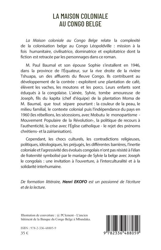 La Maison coloniale au Congo Belge relate la complexité de la colonisation belge au Congo Léopoldville mission à la fois humanitaire, civilisatrice, dominatrice et exploitatrice dont la fiction est retracée par les personnages dans ce roman. M. Paul Baumal et son épouse Sophie s'installent en 1946, dans la province de l'Équateur, sur la rive droite de la rivière Tshuapa. Ils contribuent au développement de la contrée exploitent une plantation de café, élèvent les vaches, les moutons et les porcs. Leurs enfants sont éduqués à la congolaise. L'ainée, Sylvie, tombe amoureuse de Joseph, fils du kapita de la plantation Moma de M. Baumal, que tout sépare pourtant la couleur de la peau, le milieu familial, le contexte colonial puis l'indépendance du pays en 1960 (les rébellions, les sécessions, avec Mobutu le monopartisme, la politique de recours à l'authenticité, la crise avec l'Église catholique. Cependant, les chocs culturels, les contradictions religieuses, politiques, idéologiques, les préjugés, les différentes barrières, l'inertie coloniale et l'agressivité des évolués congolais n'ont pas résisté à l'élan de fraternité symbolisé par le mariage de Sylvie la belge avec Joseph le congolais une invitation à l'ouverture, à l'interculturalité et à la solidarité interhumaine.
