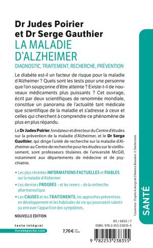 Le diabète est-il un facteur de risque pour la maladie d'Alzheimer ? Quels sont les tests pour une personne que l'on soupçonne d'être atteinte ? Existe-t-il de nouveaux médicaments plus puissants ? Cet ouvrage, écrit par deux scientifiques de renommée mondiale, constitue un panorama de l'actualité tant médicale que scientifique de la maladie et s'adresse à ceux et celles qui cherchent à comprendre ce phénomène de plus en plus répandu.