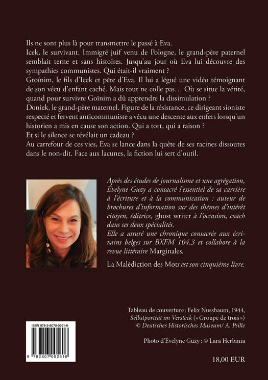 Et si le silence se révélait un cadeau ? se demande Eva enentamant une enquête sur la vie de ceux qui ne sont plus là. Icek,le survivant. Terne et laid, le grand-père paternel semblait sans histoire. Unimmigré juif venu de Pologne dans les années 30. Jusqu’au jour où Eva pensedécouvrir son passé communiste. Qui était vraiment Icek ? Groïnim,l’enfant d’Icek, le père d’Eva. Peu avant de mourir, il lui a légué une vidéoqui témoigne de son passé de guerre. Mais tout ne colle pas... Où se situe lavérité alors que l’enfance cachée de Groïnim lui a appris la dissimulation? Doniek, le résistant, grand-père maternel. Figure importante de lalutte armée belge, dirigeant sioniste respecté et fervent anticommuniste, Donieka vécu une descente aux enfers lorsqu’un historien a mis en cause son action.Qui a tort, qui a raison ? Au carrefour des vies du Survivant, del’Enfant et du Résistant, Eva saisit sa propre existence et se forge un destinchoisi, dans l’amour des silences du passé.