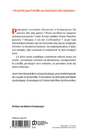 Pourquoi certains divorcés s'écharpent-ils encore dix ans après ? Peut-on bien se séparer amoureusement ? Faut-il tout oublier d'une histoire passée ? Risque-t-on de s'effondrer ? Jean Van Hemelrijck montre qu'on s'invente une façon originale d'éviter ce bouleversement : la malséparation. L'idée est simple, elle consiste à maintenir le lien malgré tout. Ce livre nous explique comment mieux nous en sortir : en amour comme en désamour, comprendre le conflit, protéger nos enfant, et prendre soin de notre histoire.