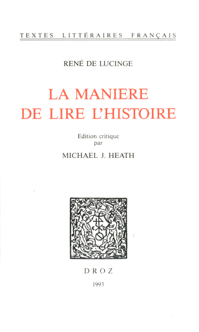 La dernière publication de René de Lucinge est un traité d'historiographie dans lequel le diplomate savoyard s'inspire non seulement de ses lectures, mais aussi de sa propre expérience d'auteur et de la part qu'il a prise aux événements historiques de son temps. Lucinge évoque discrètement sa grande ambassade parisienne et sa disgrâce lors de la signature du traité de Lyon en 1601. L'introduction de Michael Heath, éditeur en 1984 du chef d'œuvre de Lucinge, La Naissance, duree et chute des Estats (cf. TLF n° 325), porte sur les aspects autobiographiques, techniques et philosophiques d'un ouvrage qui occupe une place particulière dans l'histoire de l'histoire, puisque Lucinge y rejette le pédantisme poussiéreux de certains contemporains en faveur d'une conception dynamique de ce « trésor de l'antiquité ». Les variantes d'un brouillon autographe, heureusement conservé à Dijon, permettent à l'éditeur de mettre en valeur l'assiduité de Lucinge écrivain et l'épanouissement du style de cet admirateur et disciple de Montaigne.