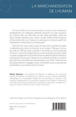Un micro-trottoir sur la marchandisation du corps humain indiquerait probablement une indignation générale renvoyant aux pires souvenirs de l'histoire. Bien que dénoncés, de tels fléaux persistent, tantôt de façon frontale (gestation pour autrui), brutale (vente forcée d'organes, enfants-soldats, etc.) ou insidieuse (la zone grise du mercato sportif, de l'exploitation intellectuelle, du mannequinat). Comment en est-on resté là, près de 250 ans après la Déclaration des Droits de l'homme et du citoyen ? Pourquoi n'a-t-on pas créé en 1948 des droits universels à l'humanité (au lieu de droits de l'homme) ? Comment comprendre les causes-racines de ces crimes, délits ou petits arrangements ? Comment se sont installées les dérives d'une part, la banalisation d'autre part ? Quelle est la complicité des États, une manne pour des tiers-intervenants et un boulevard pour les mafias ? Telles sont les principales réflexions engagées ici pour comprendre ce qui se joue encore actuellement un peu partout dans le monde.