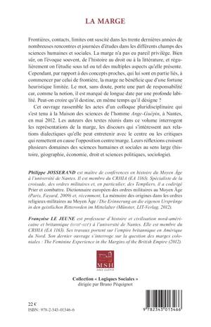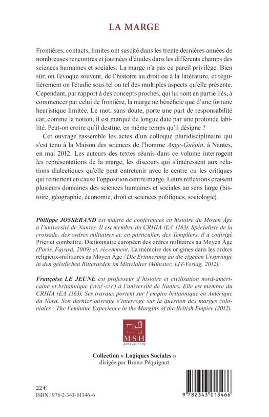 Souvent évoquée, "la marge" ne bénéficie que d'une fortune heuristique limitée par rapport à des concepts proches. Le mot, sans doute, porte une part de responsabilité, car il est marqué par une profonde labilité. Ici sont interrogés les représentations de la marge, les discours qui s'intéressent à ses relations dialectiques avec le centre ou les critiques qui remettent en cause l'opposition centre/marge. Histoire, géographie, économie, droit et sciences politiques, sociologie sont mis à contribution pour éclairer ce concept.