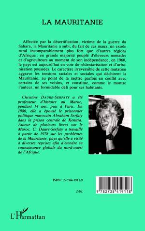 Affectée par la désertification, victime de la guerre du Sahara, la Mauritanie a subi, du fait de ces maux, un exode rural incomparablement plus fort que d'autres régions d'Afrique : en grande majorité peuplé d'éleveurs nomades et d'agriculteurs au moment de son indépendance, en 1960, le pays est aujourd'hui en voie de sédentarisation et d'urbanisation poussées. Le caractère irréversible de cette mutation aggrave les tensions raciales et sociales qui déchirent la Mauritanie, au point de la mettre parfois en conflit avec certains de ses voisins, et constitue, comme le montre l'auteur, un formidable défi pour ses habitants.