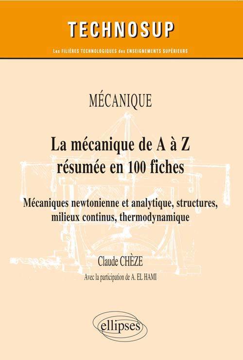 Ce condensé de mécanique couvre les différents domaines qui s’inscrivent dans le cadre très général de la mécanique. Après un rappel des outils mathématiques nécessaires, il explore successivement la cinématique, la dynamique, la mécanique analytique, les vibrations, les milieux continus, les structures, la thermodynamique, la mécanique des fluides.