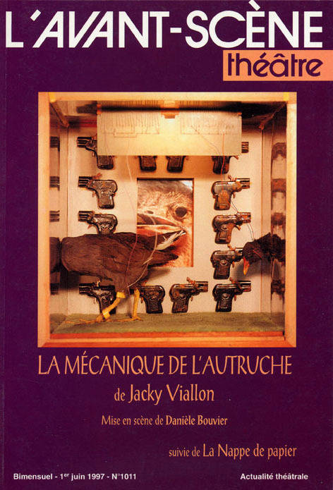 La Mécanique de l'autruche : Au XXème siècle, une famille est désignée d’office pour composer un texte, qui sera joué à l’occasion de la Grande Représentation Annuelle. La manifestation est sponsorisée par la Maison « Pluch » qui soutient le régime dans son entreprise d’assainissement des consciences. Il y a le père, la mère, le fils. On répète la scène de l’angoisse. Puis la scène avec le fils. Sous le regard du comité de censure. La répétition dérape. Sommes-nous dans l’univers de la pièce ? Dans la réalité ?