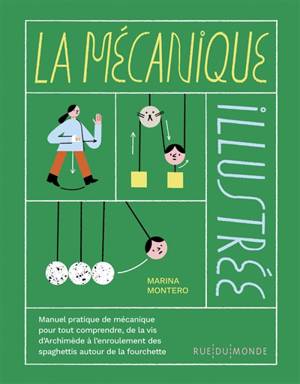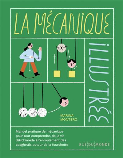 Quand la laisse de votre chien s’enroule autour d’un arbre, vous découvrez le principe de la poulie. Le doigt dans le nez, c’est le principe de la vis. Et les spaghettis autour de la fourchette, c’est aussi de la mécanique. À partir de dizaines d’exemples du quotidien, ce manuel pratique nous explique la mécanique avec précision et sourire. Il nous raconte aussi comment des hommes et des femmes illustres, d’Archimède à Émilie Du Châtelet, ont fait avancer la science, la tête dans la galaxie des chiffres, tout en gardant les pieds sur terre… Ah, mais ça, c’est à cause de la force de gravité !
