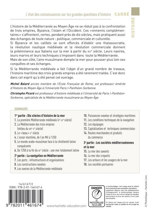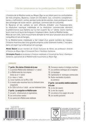 Partant de la définition de la Méditerranée par Fernand Braudel, l'ouvrage rappelle d'abord la richesse de l'historiographie sur le sujet et définit un objet : l'histoire de la mer et non celle des puissances bordières. C’est une histoire globale sur les 10 siècles du Moyen Âge.