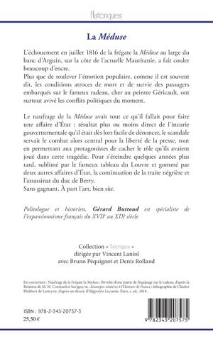 Si de nombreux ouvrages ont déjà raconté l'événement de l'échouement de la Méduse en juillet 1816 au large du banc d'Arguin, sur la côte de l'actuelle Mauritanie, la perspective choisie ici s'intéresse à sa construction politique. Plus que de soulever l'émotion populaire, comme il est souvent dit, les conditions atroces de mort et de survie des passagers embarqués sur le fameux radeau, cher au peintre Géricault, ont surtout avivé les conflits politiques du moment. Le naufrage de la Méduse avait tout ce qu'il fallait pour faire une affaire d'État : résultat plus ou moins direct de l'incurie gouvernementale qu'il était dès lors facile de dénoncer, le scandale servait le combat alors central pour la liberté de la presse, tout en permettant aux protagonistes de cacher le rôle qu'ils avaient joué dans cette tragédie.