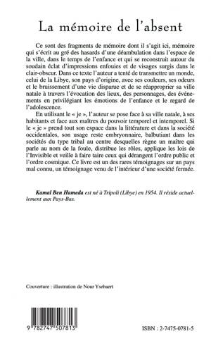 Dans ce texte, l'auteur a tenté de transmettre un monde, celui de la Lybie, son pays d'origine, avec ses couleurs, ses odeurs et le bruissement d'une vie disparue et de se réapproprier sa ville natale à travers l'évocation des lieux, des personnages, des événements en privilégiant les émotions de l'enfance et le regard de l'adolescence. Ce livre est un rare témoignage sur un pays mal connu, un témoignage venu de l'intérieur d'une société fermée.